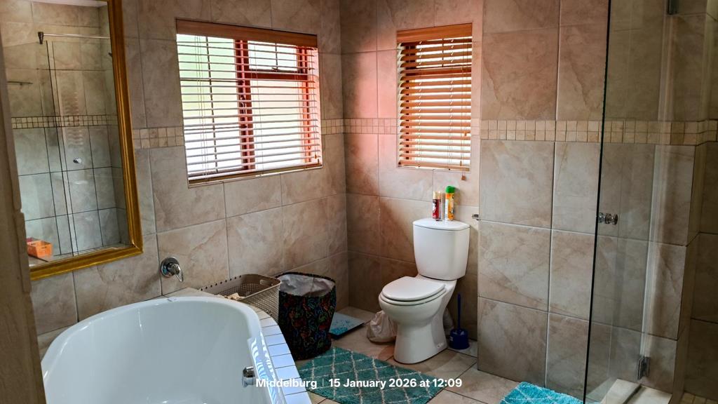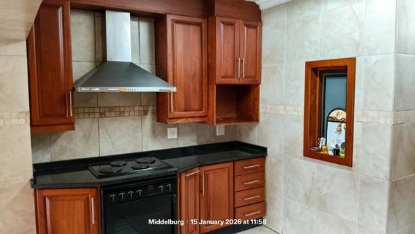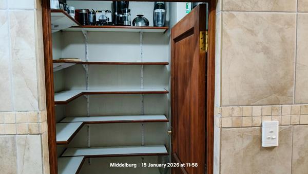 Downstairs, the covered patio with build in braai extends the living space outdoors, ideal for relaxed gatherings or peaceful afternoons, while the irrigation system keeps the garden flourishing year-round.