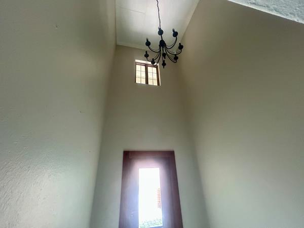 Step inside to a spacious and bright main living area, characterized by durable tiled flooring, elegant crown molding, and traditional chandeliers that add a touch of sophistication. High, vaulted ceilings create an expansive atmosphere, while natural light streams in through multiple windows. The layout includes a dedicated dining room, a comfortable lounge, and an open-plan design that promotes seamless flow. The home also features a well-appointed kitchen with a pantry, a convenient laundry area, and practical storage solutions.