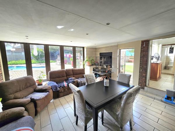 The property is packed with extras that make daily life easier and more efficient. It features an 8kVA solar system with 12 panels and an inverter, a 5000-liter JoJo tank with a pressure pump, a solar geyser and a water filtration system. Security includes an alarm system, outdoor beams, CCTV cameras and automated gates. Additional conveniences include three garages, a drive-through to the backyard, a double carport and a Wendy house for extra storage. With its combination of space, sustainability and style, this home is a standout choice for families seeking comfort and long-term value.