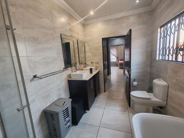 The four generously sized bedrooms are serene retreats, each with an abundance of natural light and built-in cupboards for ample storage. The two modern bathrooms are tastefully appointed, complete with stylish fixtures and fittings. A lekker braai on side stoop with n slide door opening to the dining area.