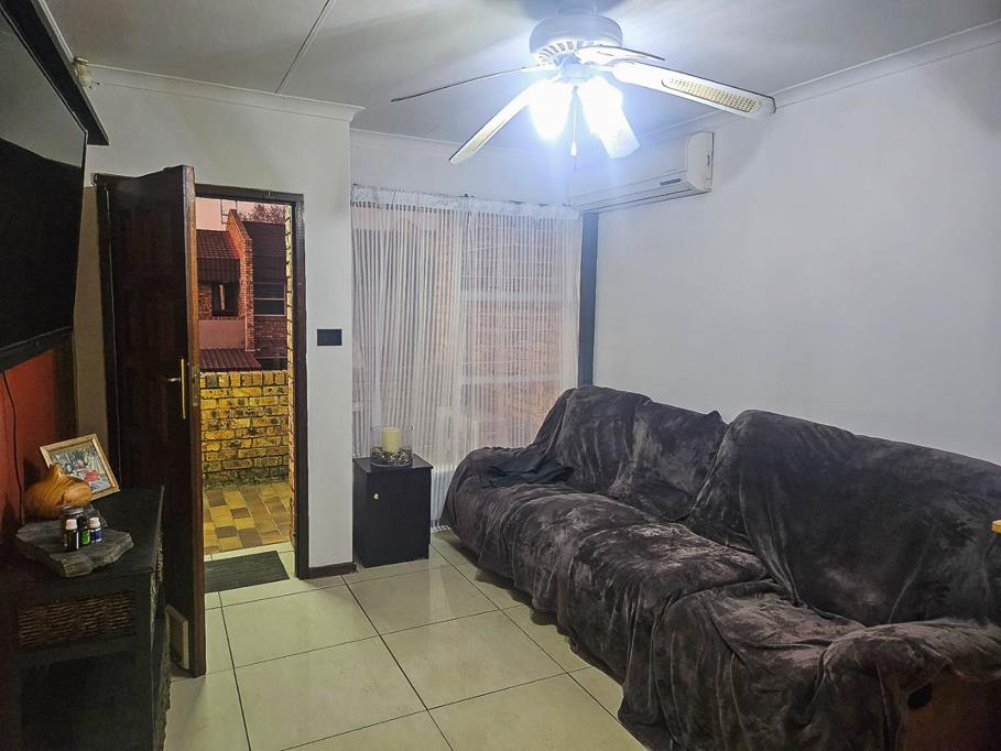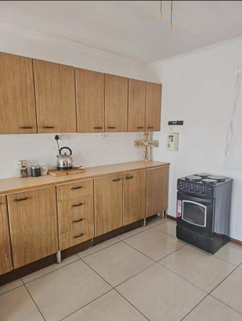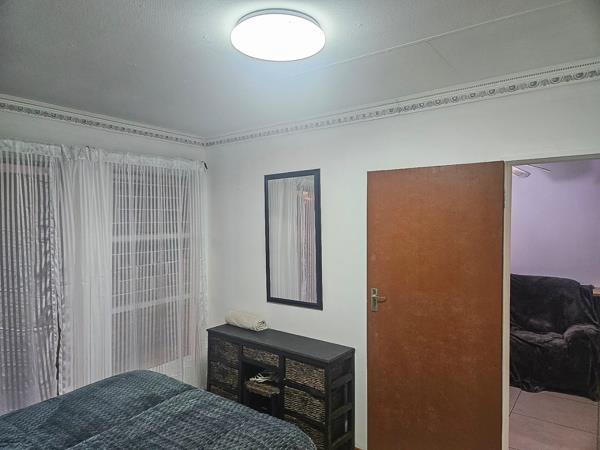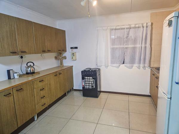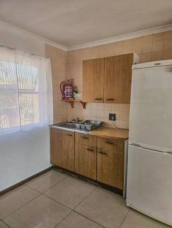 This compact and secure 1-bedroom, 1-bathroom property offers a practical living solution in a central Middelburg location. The interior features a functional lounge area equipped with an air conditioning unit and a ceiling fan, ensuring comfort throughout the seasons. Tiled flooring extends across the living spaces, providing a durable and easy-to-maintain finish. The kitchen is well-appointed with light wood-grain cabinetry, a tiled floor, a window for natural light, and includes a freestanding stove and refrigerator, catering to daily culinary needs.