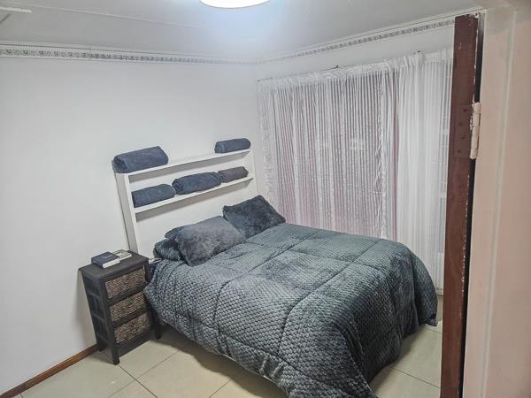 The single bedroom provides a private retreat, complete with tiled flooring and a large window fitted with sheer curtains for privacy, complemented by security bars for peace of mind. While the bathroom count is one, its functional design supports comfortable living. The property''s layout is designed for efficiency, making the most of its 59 sqm floor size.