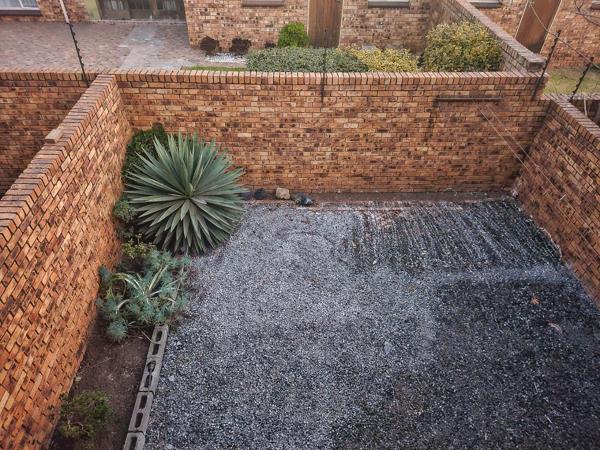 Outdoor living is facilitated by a small, enclosed patio area directly accessible from the lounge, perfect for quiet relaxation. Additionally, a private garden space features low-maintenance gravel and established succulent plantings, enclosed by durable brick walls. Security is a key feature, with an alarm system, a robust security gate at the entrance, burglar bars on windows, and electric fencing along the perimeter walls, enhancing the property''s safety profile. The exterior boasts a classic, low-maintenance exposed brick finish, contributing to its kerb appeal.