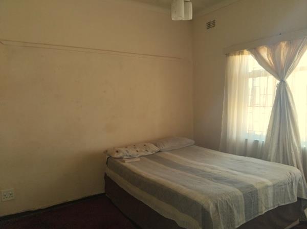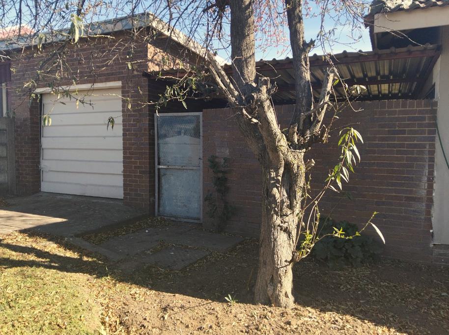 Large backyard with an outside toilet and space for kids, pets, or even future extensions