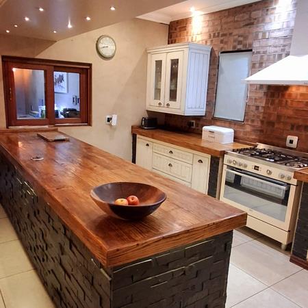 This beautifully designed home sits proudly on a 3061m2 stand, surrounded by manicured gardens that offer complete peace and privacy. The modernfarm style kitchen with solid wood counter tops flows effortlessly into the spacious living areas, complemented by a cozy fireplace and an inside braai room ideal for year-round entertaining.