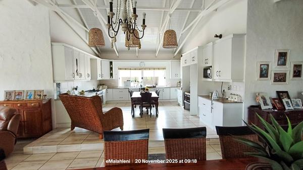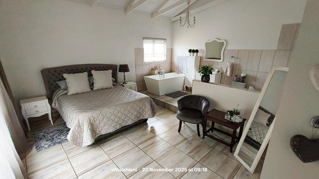 This land has been lovingly shaped into a haven of possibility. At its heart stands a warm and inviting 4-bedroom, 2-bathroom open-plan home, designed for comfort and connection. Its spacious living area flows effortlessly into a welcoming braai room, ideal for lazy Saturday gatherings. A private study offers quiet focus, while double garages stand ready for vehicles, tools, or weekend adventures.