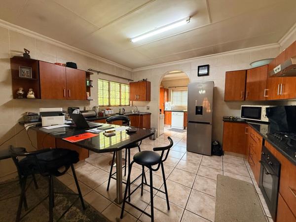 Functional kitchen with ample cupboard space and breakfast counter