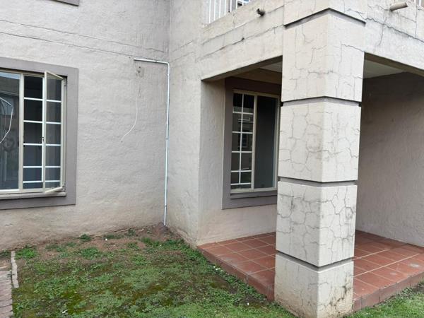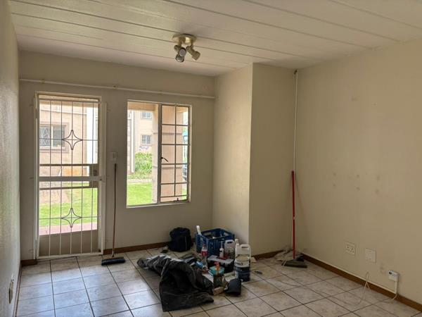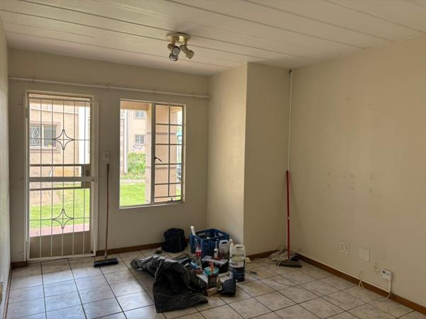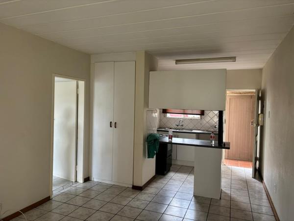 The bedroom includes an ensuite bathroom for added privacy. Security is well taken care of with security gates and burglar bars on all windows. Step outside to a tiled patio with direct access to a grassy communal areaideal for relaxing outdoors.