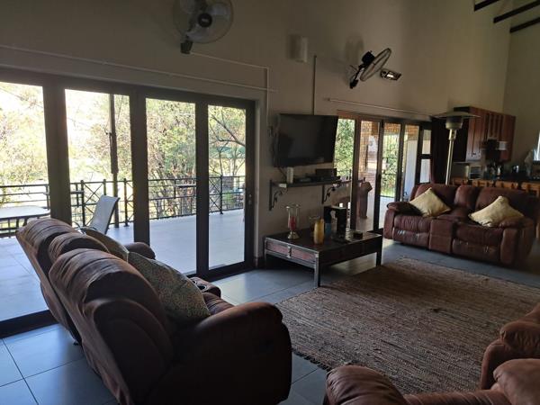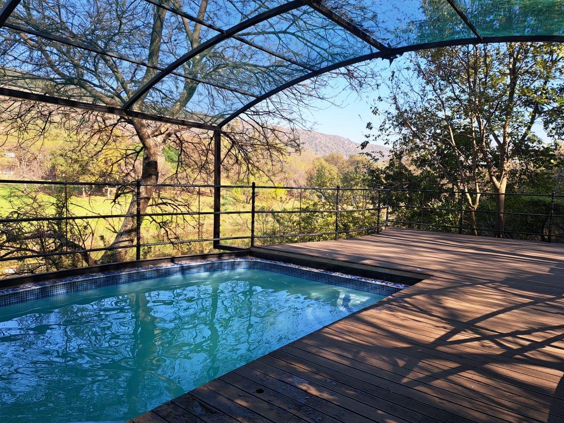 Beyond the living area, a veranda beckons, overlooking the awe-inspiring Olifants River. This outdoor sanctuary is adorned with a built-in braai and offers a serene atmosphere for dining and unwinding. As you soak up the ambiance, a refreshing swimming pool tempts you to take a dip, mere meters away from the tranquil river.