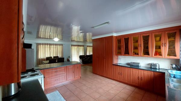 This home offers open plan living, a kitchen, and living areas with a separate braai room, three bedrooms, and three bathrooms, of which two are ensuite and a guest bathroom. Four garages for all the vehicles and more, and a double carport.
