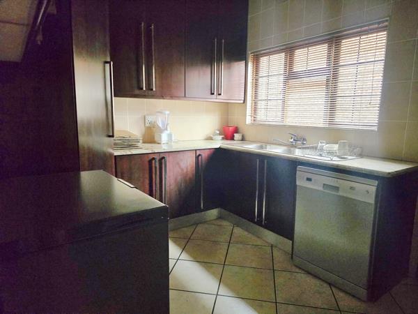 Step inside and experience a sense of openness as the large, tiled, open-plan dining and lounge area seamlessly flows into a chef-inspired kitchen. The kitchen boasts an impressive layout with a two-plate gas hob, ample built-in cabinets, and a separate scullery with additional cupboards for convenience. A dedicated laundry room with built-in storage makes household management effortless.