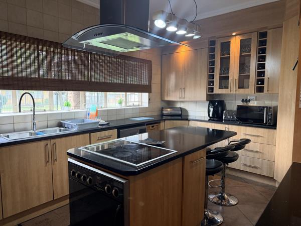 The stunning modern kitchen flows seamlessly into the living room and spacious entertainment area, featuring an indoor braaiperfect for year-round entertaining. Step outside to enjoy a sparkling heated swimming pool and a closed-off lapa, all set within a neatly maintained garden.