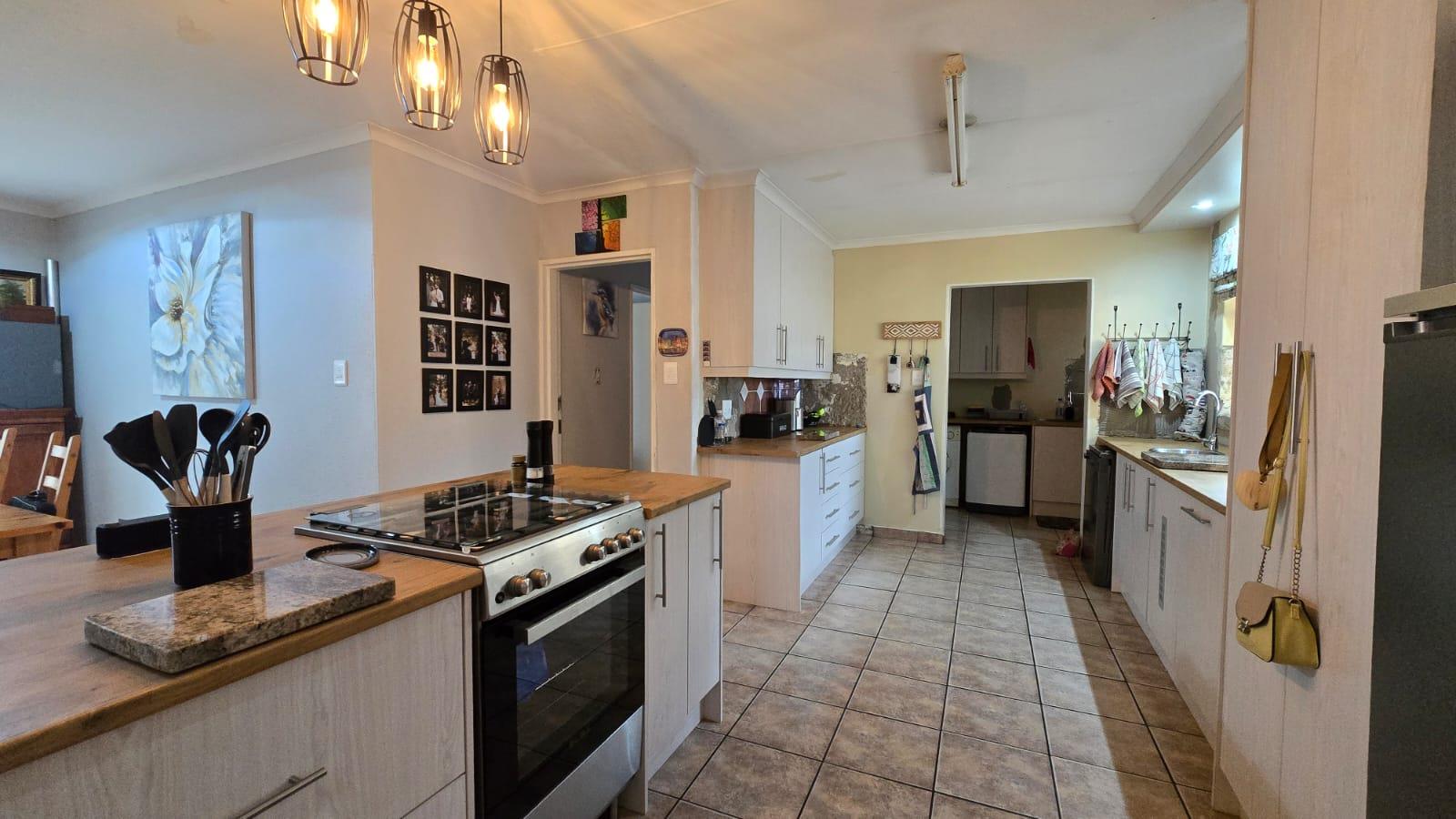 Step into a stunning kitchen fitted with ample cupboards and a gas stove perfect for the home chef. The separate scullery and laundry area keeps the main kitchen neat and functional, giving you extra convenience and storage space.