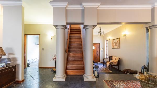 The Entertainers dream! If you enter through the automated gate that leads to the double garage you turn slight left to enter the front door with entrance hall and from here overlook the very spacious open plan diningTV Loungekitchen area that also host the extra bathroom with shower, toilet and basin on the furthest right wall. This area opens up onto the large under cover veranda with stacking doors, definitely the biggest asset of this home! You also find the Jacuzzi, built-in braai and with neighboring rinsing bowl for convenience. There is enough space between this veranda and the main bedroom to add a splash pool.