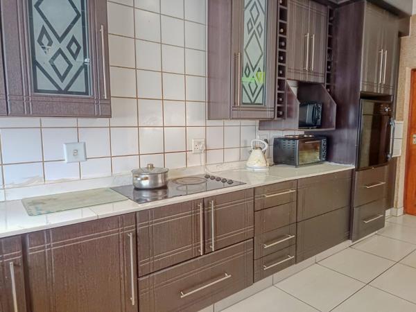 This double-storey property offers exceptional space and potential, featuring 6 bedrooms and 4 full bathrooms, including 2 en-suite bedrooms. With a TV room upstairs, a lounge and dining area downstairs, and a generously sized kitchen, there is ample room for comfortable family living. The home is fully walled and includes two garages, ensuring privacy and security.