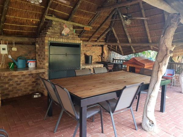 A refreshing swimming pool and a lapa with a built-in braai, creating an enjoyable outdoor space for entertaining and relaxation.