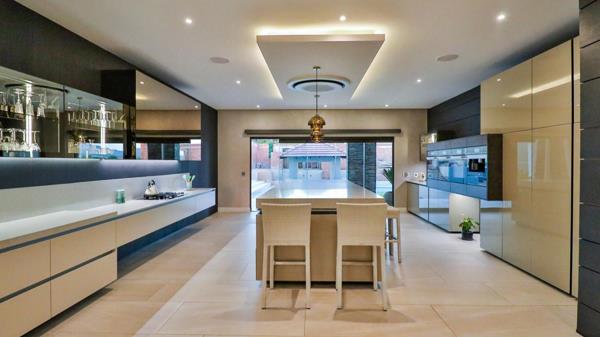 The gourmet chefs kitchen has top of the range push-latch light glass drawers as well as glass cabinets, a built-in double oven, microwave, food warmers, built-in coffee machine, gas controlled stove and a beautiful center island where one may enjoy breakfast with the family while also taking in the view of the pool and Jacuzzi area. The scullery has ample storage space and a designated area for a washer, dryer and dishwasher.