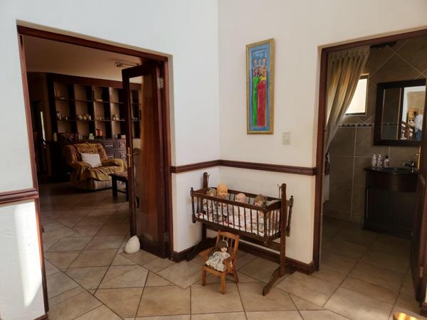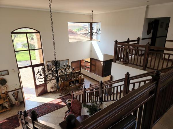 Step into a world of prestige and timeless beauty as you enter this remarkable residence, where elegance, comfort, and breathtaking views converge. The abundance of natural light fills the space, enhanced by dramatic chandeliers and a grand two-way staircase that leads to four out of the five bedrooms. Prepare to be captivated by the main bedroom, boasting a full en-suite bathroom and walk-through cupboards with ample space. A study room/pyjama lounge offers additional comfort and privacy, while three large bedrooms share two full bathrooms.