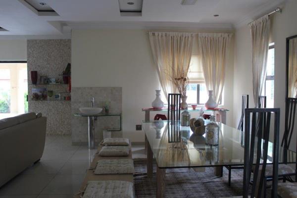 The living area downstairs seamlessly connects to the covered patio, where a built-in braai awaits your culinary creations. A sparkling swimming pool adds a touch of luxury and completes the outdoor entertainment space, providing the perfect oasis for relaxation and enjoyment.