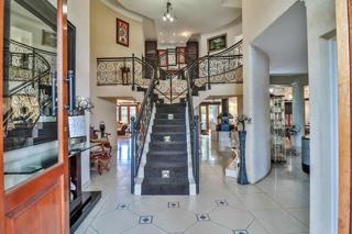 4 bathrooms, one guest bathroom, spacious open plan living areas, a modern kitchen complete with gas stove, separate scullery and laundry, outside entertainment areas overlooking a sparkling pool and a luscious tree-filled manicured garden, irrigated from a fully operational borehole.