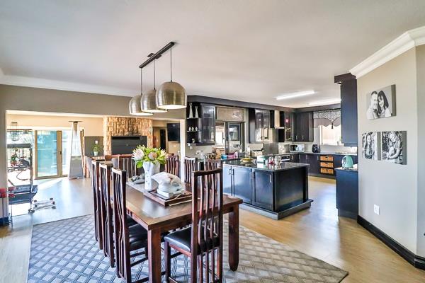The property is situated in a cul-de-sac in the very popular Birdwood Estate, with panoramic views of the beautiful Hartbeespoort dam. As you enter this very stylish home, you already get a glimpse of what awaits you. The welcoming entrance hall leads you to the lounge, open plan dining room and kitchen, and then the spacious entertainment room fitted with a built-in bar and built-in braai. This is an entertainer''s dream, as all living areas on this level open with stacking doors to the pool area. Here you can enjoy spectacular sunsets with family and friends. The large open plan kitchen is conveniently placed nearby and offers a separate scullery and walk-in pantry.