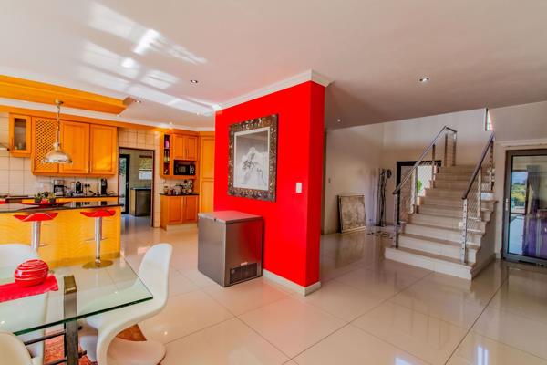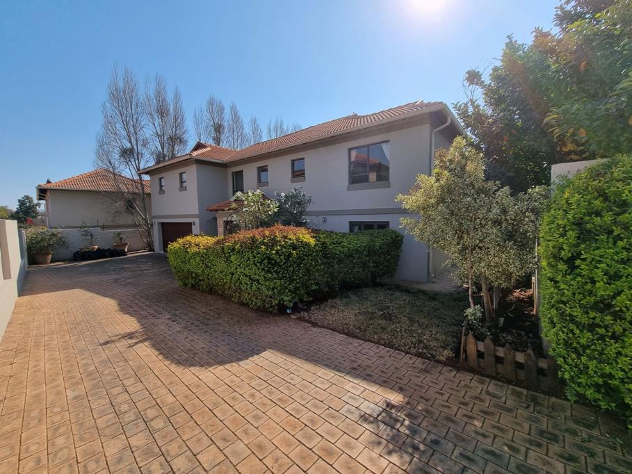Stunning 5-bedroom home situated in the popular Birdwood Security Estate.. Exclusive Mandate. Spacious living areas link beautifully with the modern open-plan kitchen, featuring a separate scullery and laundry. Stacking doors give access to the patio and pool area with beautiful views. A guest bedroom with an en-suite bathroom is situated downstairs for your convenience. Upstairs are four large bedrooms and it is complimented by an additional family room and an enclosed patio area, with stunning views of the Magalies Mountains.