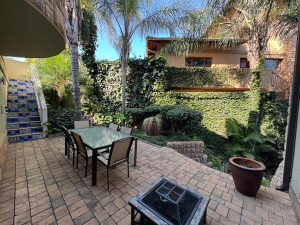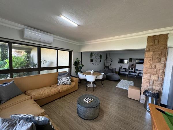 The entry level boasts an open-plan layout perfect for entertaining, featuring a sophisticated bar area with a built-in braai and wine rack, a pristine white kitchen with granite countertops, and a scullery with a pantry.