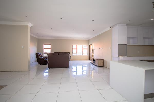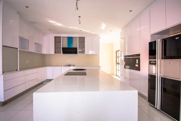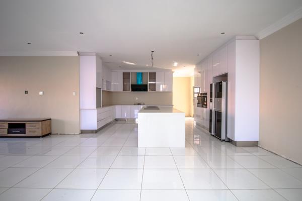 The property boasts expansive open-plan living areas, private lounge, and a stunning kitchen featuring a central island, separate scullery, and premium finishes throughout. A guest bedroom with an en-suite bathroom is conveniently located on the ground floor for added privacy and comfort. The property remains incomplete in certain areas, offering an opportunity for the new owner to add their personal touch.