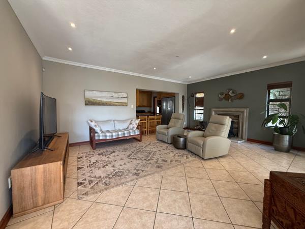 Sliding doors open to the lush garden, where youll find a sparkling swimming pool, a built-in braai, a private undercover patio, and a cozy fire pitan ideal setting for memorable gatherings with family and friends.