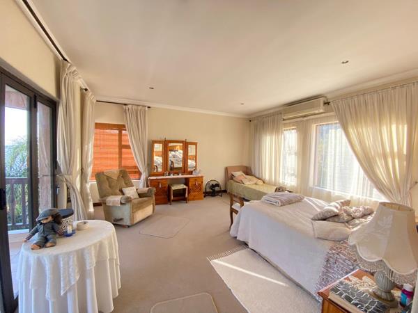 Four of the bedrooms are situated upstairs and boast comfortable space with amazing views. The main bedroom is a sanctuary of comfort and elegance, featuring a full en-suite bathroom. This room also opens onto a balcony that spoils you with stunning views and includes a gas braai, perfect for spending quality time outdoors.