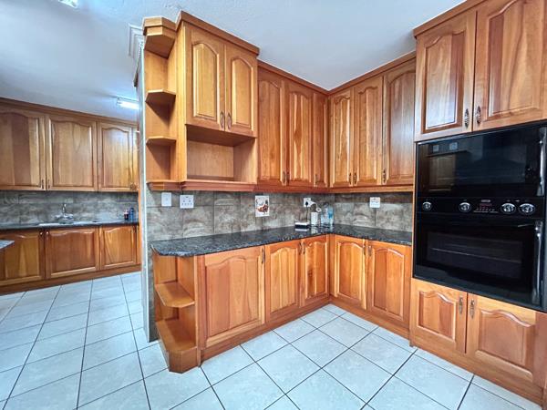 Gourmet kitchen with double oven, electric stove, extractor & ample storage