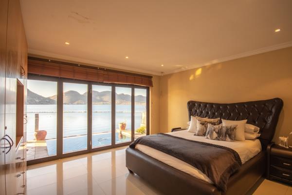 The expansive lounge and dining area seamlessly extend to a stunning patio/deck, creating a breathtaking panorama of water and mountain views. The luxurious main bedroom offers a picturesque view of the infinity pool, with its waters cascading into the dam. Adjacent to the pool, a private jetty awaits, perfect for launching your boat into the pristine waters.