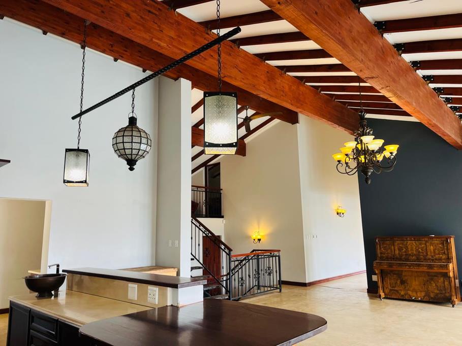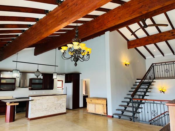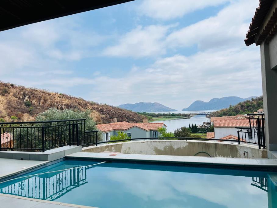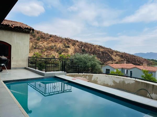 Marvel at the breathtaking views of the sparkling swimming pool, the serene dam, and majestic mountains that surround this exquisite property. With a generous storeroom and well-maintained gardens, security is paramount in this estate, ensuring peace of mind for you and your family. Enjoy open-plan living with soaring vaulted ceilings, a laundry area, and a delightful balcony and patio for relaxing or entertaining.