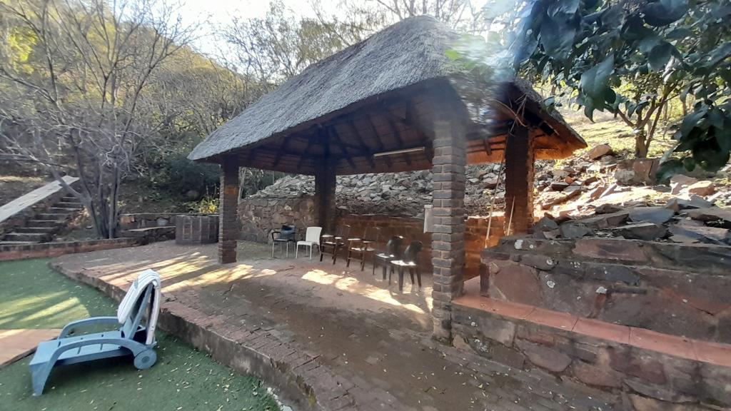 Beautiful manicured gardens create a Zen like atmosphere. The pool area has a lapa and 2 indian like huts which are unique and create a relaxing scenario. The property would also be ideally suited for a Lifestyle Resort where people can get away from it all and enjoy nature and its surroundings at its best!A strong borehole, Eskom and metered power, 3 x 5000l Jojo tanks and staff quarters complete this magnificent investment!