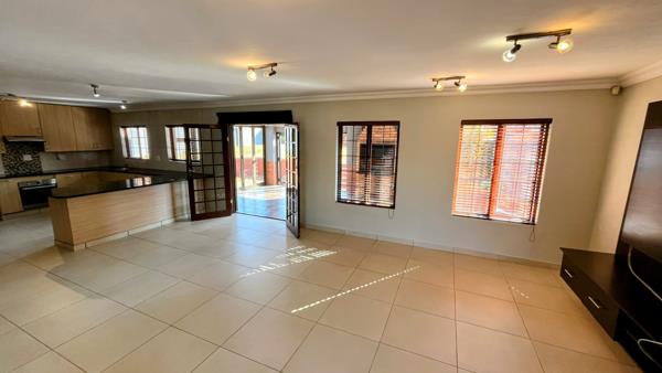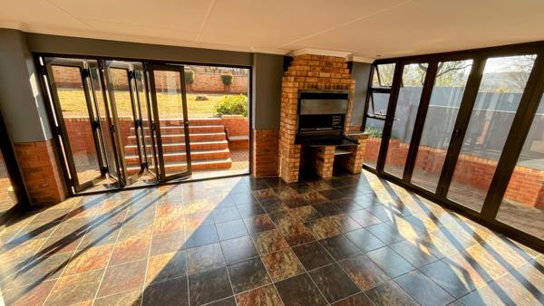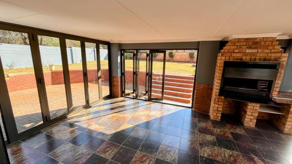 Open-plan living area flows effortlessly into a semi-indoor braai space via elegant stack doors perfect for all-weather entertaining