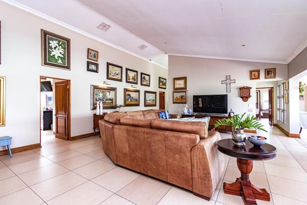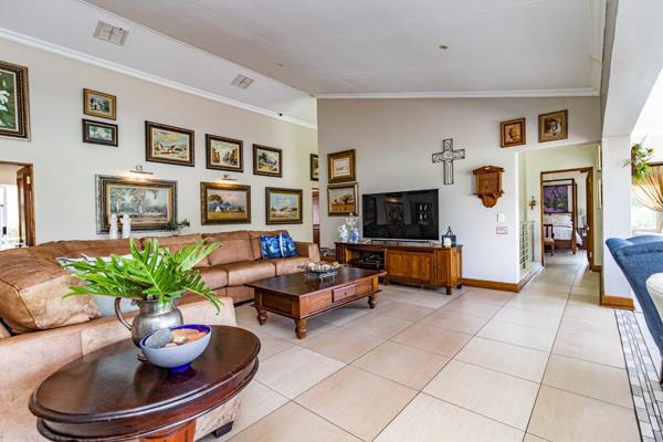The open-plan lounge, kitchen, and dining area boasts double-volume ceilings, creating an impressive sense of space and grandeur. Large sliding windows open wide to welcome in fresh air and natural light, enhancing the seamless indoor-outdoor living experience. Both the lounge and kitchen enjoy beautiful dam views, adding a tranquil touch to everyday living.