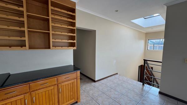 As you move up, practicality meets functionality with direct access to the garage, a versatile studio/workspace, and a separate laundry area. The main living area, just another half-level up, boasts an open-plan living and dining space adorned with warm wooden finishes. The spacious kitchen flows onto an expansive patio with panoramic views of the dam and surrounding mountains. A built-in braai area ensures effortless outdoor entertaining, while stairs lead directly to the lush garden below. On the upper level, you''ll find a tranquil guest suite perfect for visitors or extended family.
