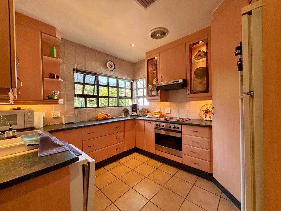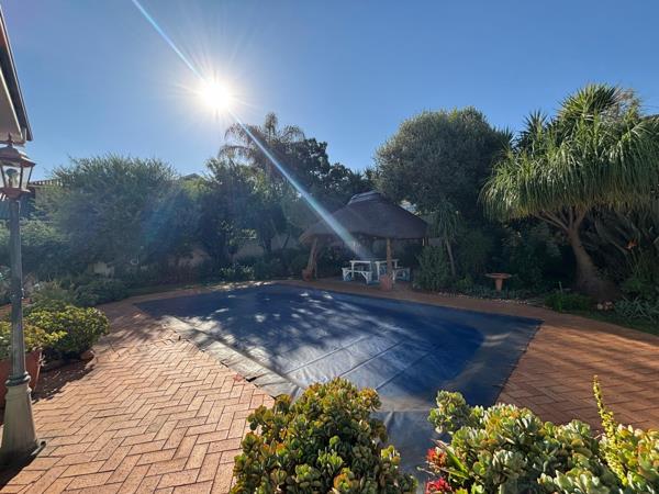 This modern home featuring a melamine kitchen with hob, extractor fan, stove, pantry and breakfast nook. Includes a laundry room, 3 garages with remote access and a double carport. Enjoy a beautifully maintained garden with irragation, pool and lapa.