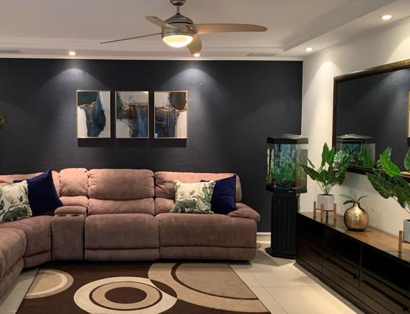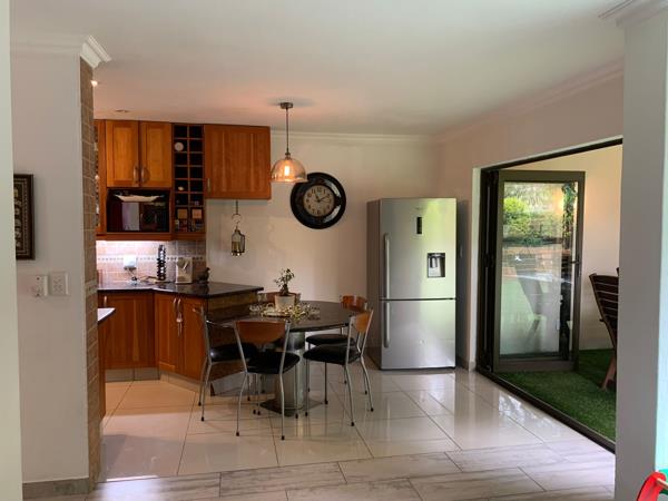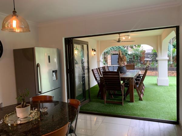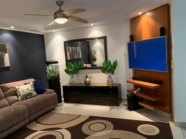 Outside, you''ll find a charming backyard that provides a peaceful retreat, complete with artificial landscaping and a perfect boma for hosting gatherings. The property also includes a range of desirable features, such as three bedrooms, three bathrooms, a study, a built-in bar, an open-plan kitchen and living area, two air conditioning units, an undercover patio, a built-in braai and storage, a boma, and a new wall boundary.