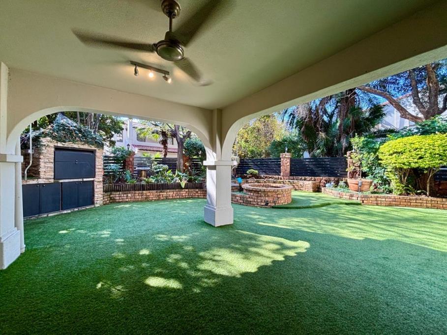 The fully enclosed garden offers a built-in braai and bomafire pit, creating an inviting outdoor living space ideal for gatherings. Additional conveniences include an inverter backup system, air conditioning, ceiling fans, and a secure lock-up boat locker.