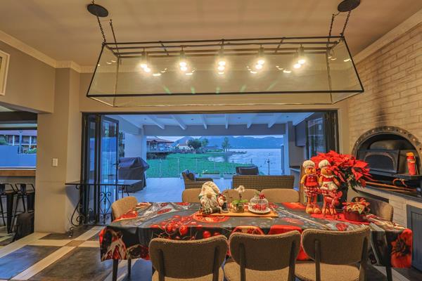 Outdoor living is elevated with a covered patio featuring herringbone tiles, glass railings, and a built-in braai, leading to a private pool, lush garden, and exclusive jetty access for waterfront enjoyment. The home ensures complete peace of mind with 24-hour security, solar panels, and a battery inverter for efficient, sustainable living. Eagles Landing offers tranquillity, natural beauty, and convenient access to all of Hartbeespoorts attractions, making it the ideal setting for discerning homeowners seeking a secure and luxurious lifestyle.