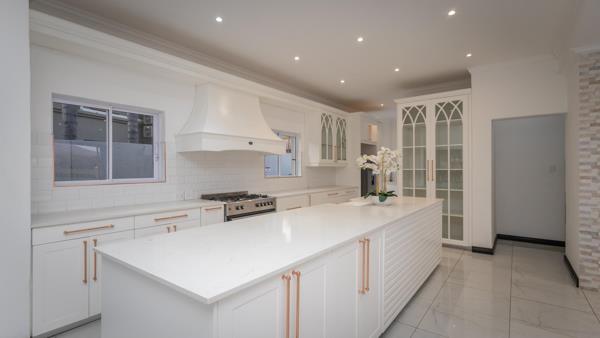 Stylish open-plan kitchen with gas stove, scullery, and laundry