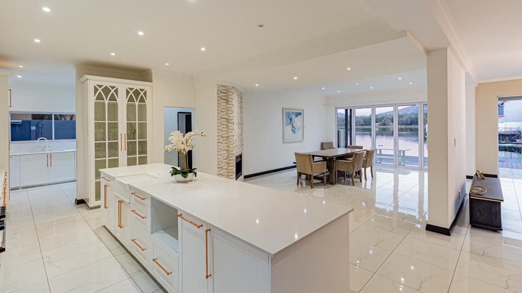 Experience the ultimate in luxury living with this stunning 6-bedroom and 6 en-suite bathroom all en-suite home in the sought-after Eagles Landing Estate on Hartbeespoort Dam. Perfectly positioned on the waters edge, this sophisticated retreat offers spacious, open-plan living, elegant finishes, and seamless flow to a generous entertainers deck with panoramic dam views. Perfect for a family weekend home or a couples retreat.