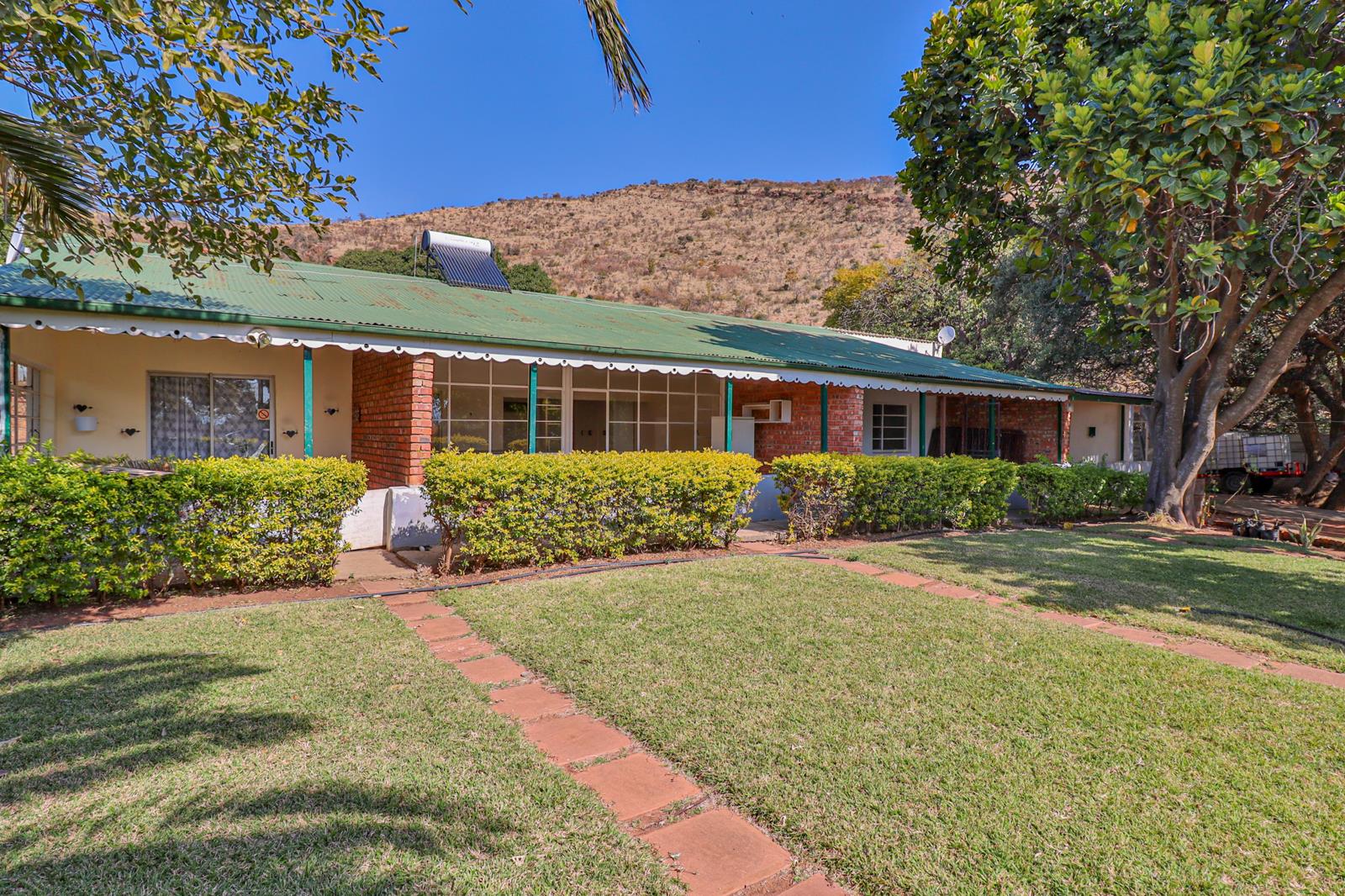 This 61.64 ha farm, is ideal for country living, and build for entertainment! This property has so much potential, a dream investment opportunity. The main property has 3 entrance gates. 3 different parking areas. A picturistic double story main house with a big entertainment area and separate, 5 flatlets. The property is situated against the slope of the Magalies mountains, fully fenced and a mere 30metres from the R104 main road! There are 7 camps for game of about 5ha each that were used for black Impala, 2 Orchards, Citrus trees and there is a Nature reserve on the top of the mountain.