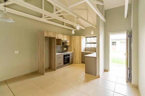 This 2-bedroom unit has a cosy kitchen with a gas stove, and an open-plan living-/dining area with open roof trusses, which open up to a reception room with a sliding door and a small garden. The bedrooms are light and sunny with built-in cupboards. The main bedroom is en-suite and the second bathroom doubles up as a guest bathroom as well.