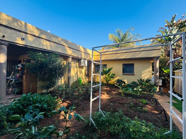 Garden: A large, well-maintained garden with a stunning palm tree and a vegetable garden.