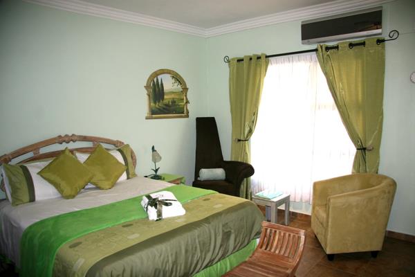 The 6 luxury furnished guest suites are all en-suite and separate from the main homestead. All rooms have air conditioning, TV, DSTV decoder, dish, dvd Player, safe, mini fridge, hairdryer, coffee/tea station and 4 sets of individual linen. A beautiful garden setting with green lawn and huge trees here one would be comfortable relaxing on lounges around the solar heated pool. Guest can enjoy a variety of activities jacuzzi, sauna, gym, entertainment room with a built-in braai, pizza oven, pool table, dart board and a bar.