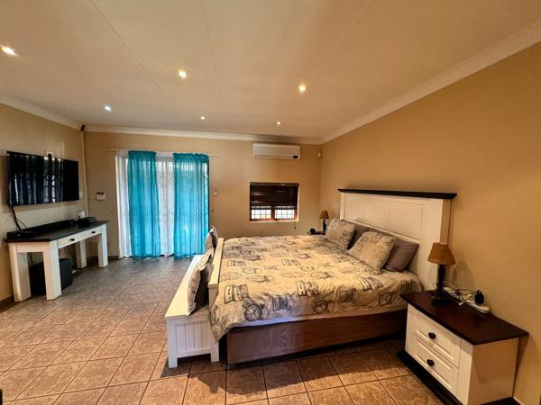 Set on a generous stand, the property boasts a stunning indoor pool adjacent to a well-appointed entertainment area complete with a built-in braai. This space is perfect for year-round gatherings, no matter the weather.