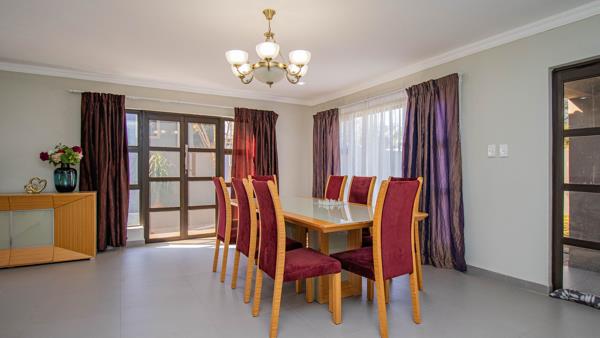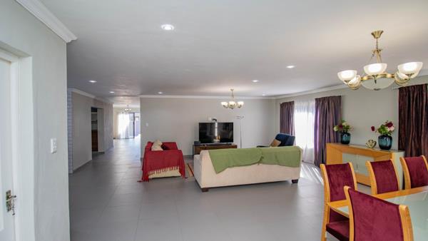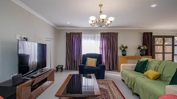 Entertain in style with a chic entertainment room featuring a built-in bar and sparkling crystal chandelier. Outside, a built-in braai invites summer BBQs and relaxing alfresco dining.