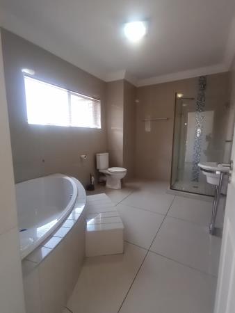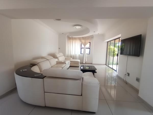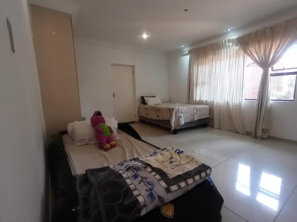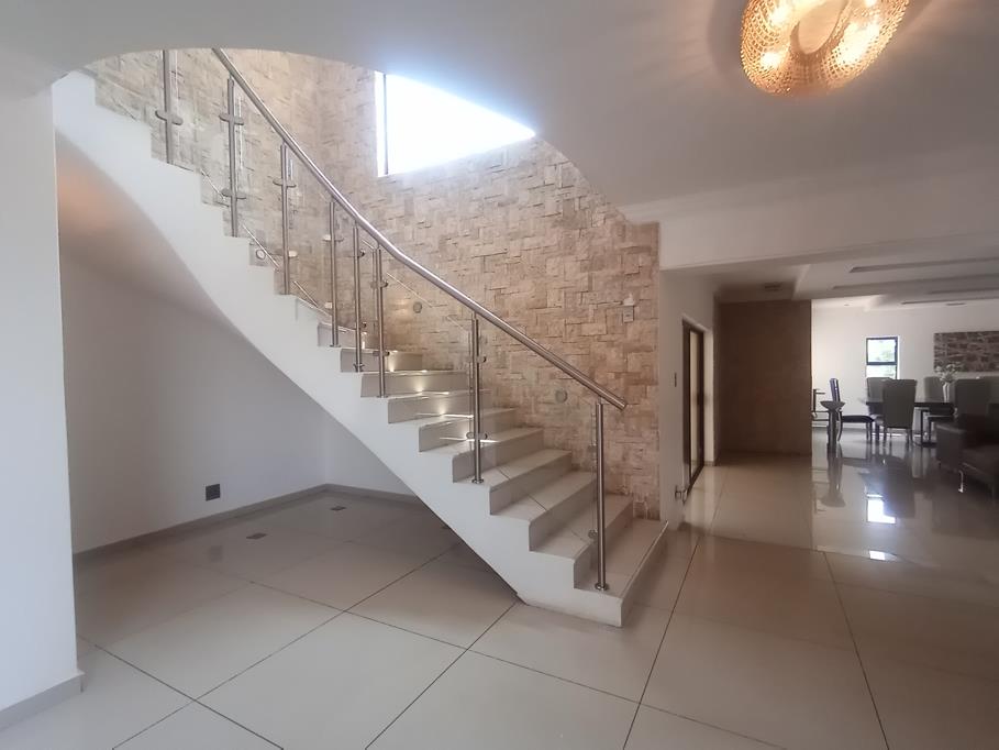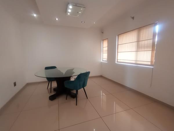 Downstairs features a guest bedroom with a full bathroom, a lounge overlooking the pool, a home office or dining room, and a formal TV lounge that opens into a generous main dining areaperfect for family feasts. The spacious, stylish kitchen is both practical and refined, complete with a centre island, walk-in pantry, scullery, and separate laundromat with outdoor access. Outside, enjoy a beautifully paved yard, large swimming pool, covered patio with braai area, and space for vegetable or garden beds.